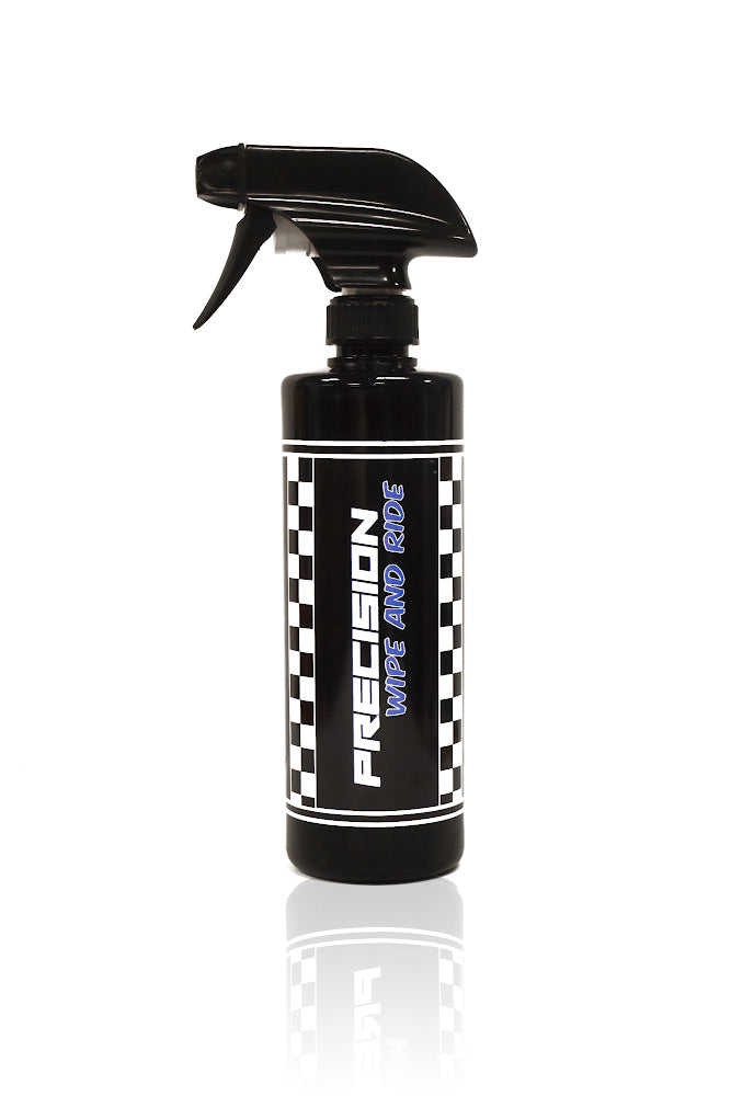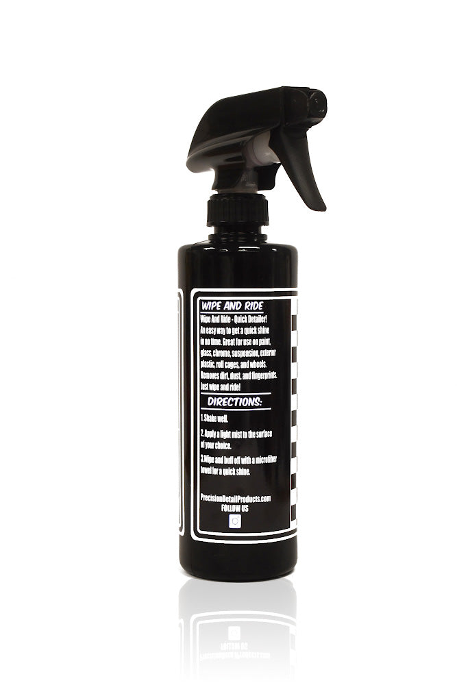 Wipe and Ride - Cinnamon Scented - Detail Spray! An easy way to get a quick shine in no time. Great for use on paint, glass, chrome, suspension, exterior plastic, roll cages, and wheels. Removes dirt, dust, and fingerprints. Just wipe and ride!